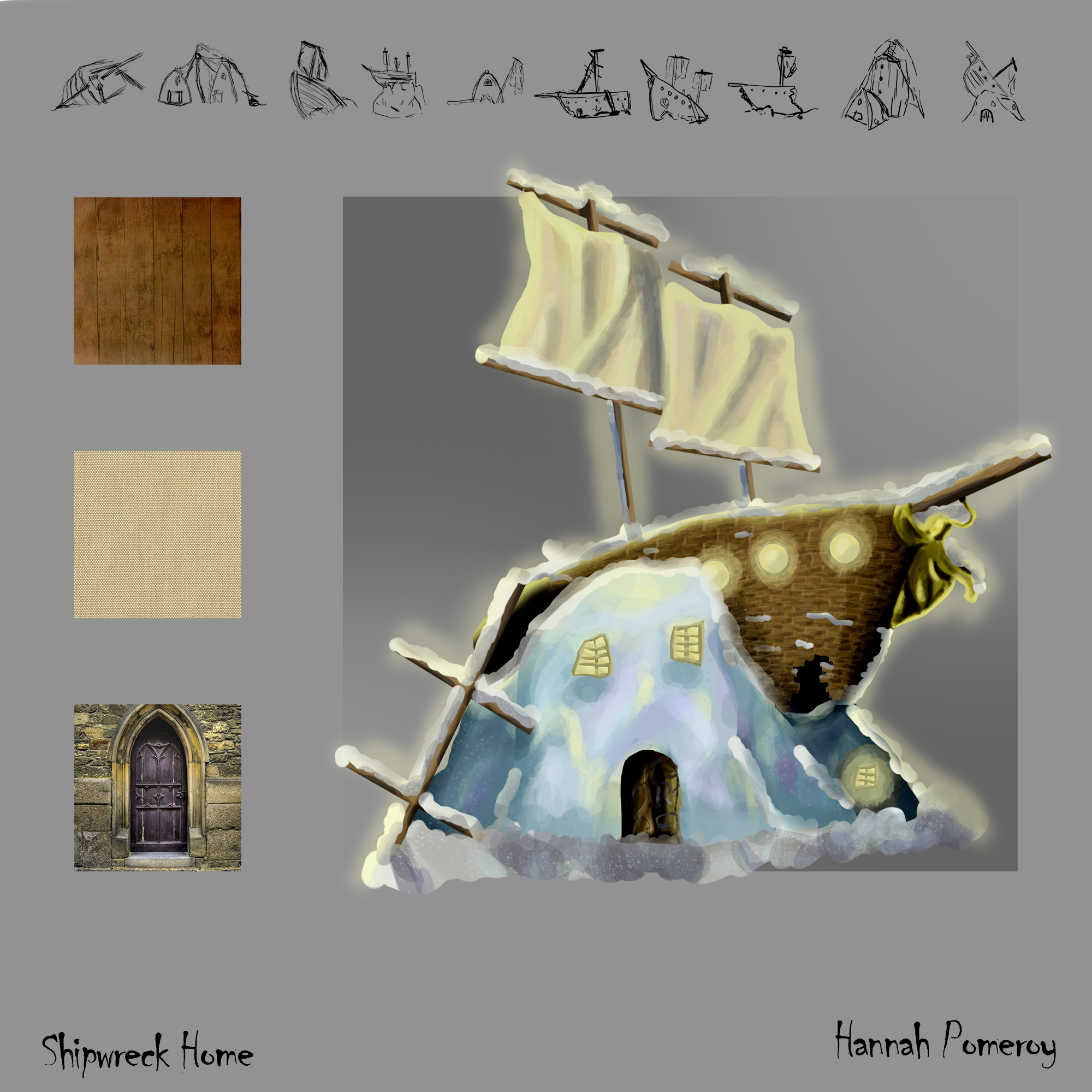 Three illustrations and an orthographic designed to work together as set pieces in other works.
